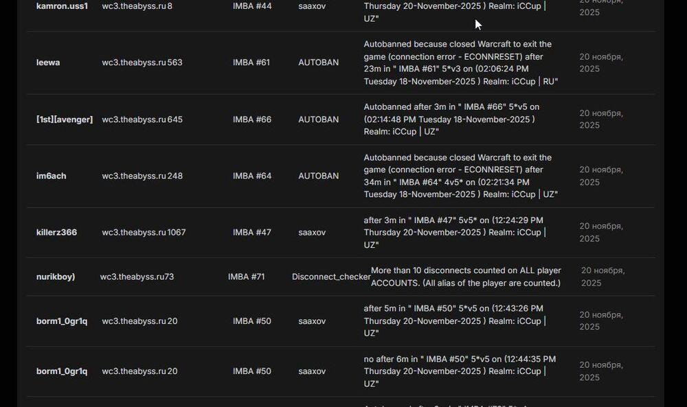 Из чата игры непонятно по какой причине был бан и кик. Поэтому забираю доступ к этим командам на 1 день. Если он объяснит по какой причине это было то команды будут возвращены. -