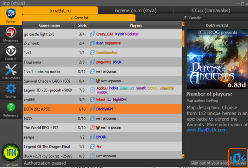 d. In the iCCUp server, games hosted by official iccup bots (iccup DotA) are hidden, but you can see games from custom bots.
